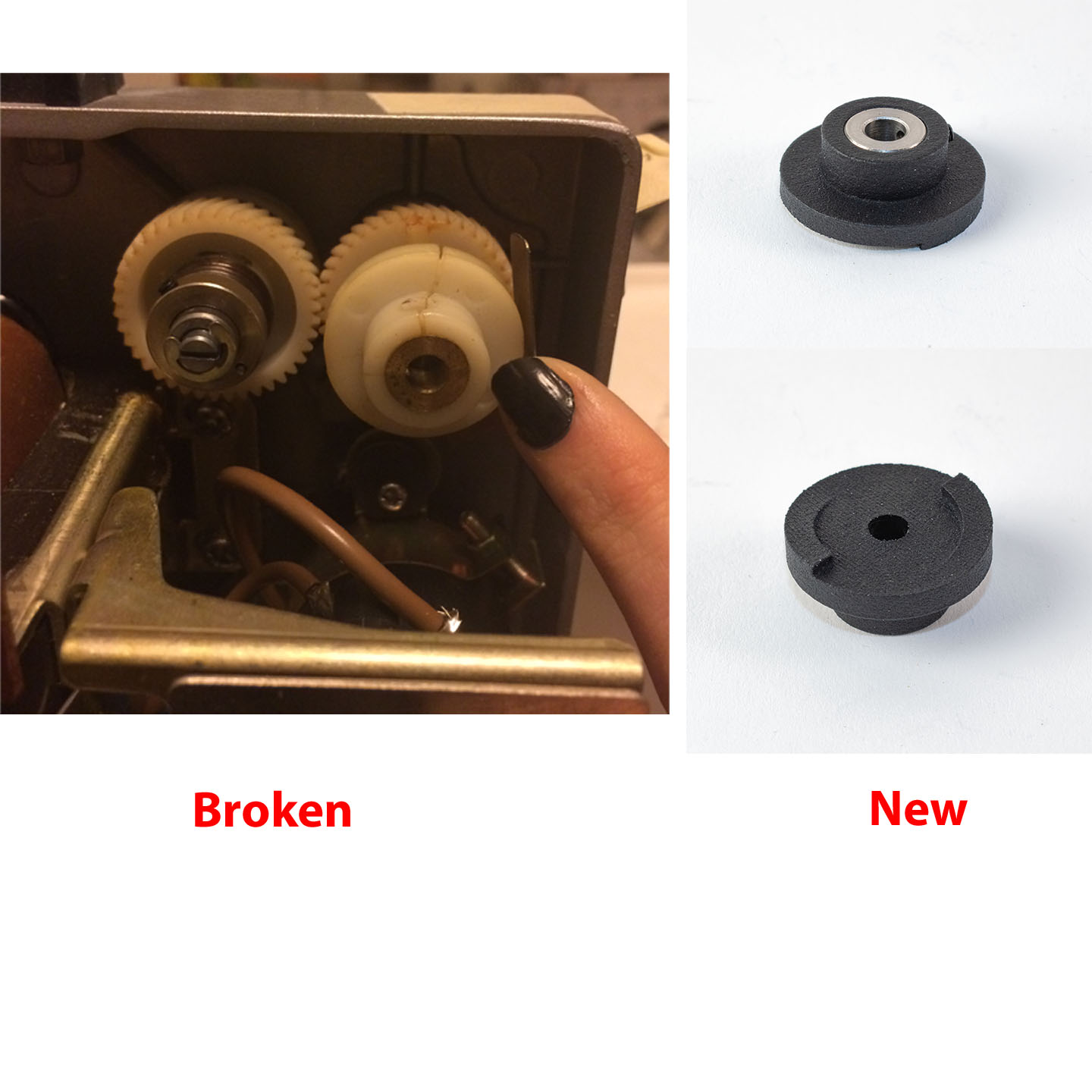 Dit tandwiel is in tegenstelling tot het originele tandwiel, spanningvrij gemonteerd op de stalen kern en zal daardoor niet scheuren zoals bij het origineel.