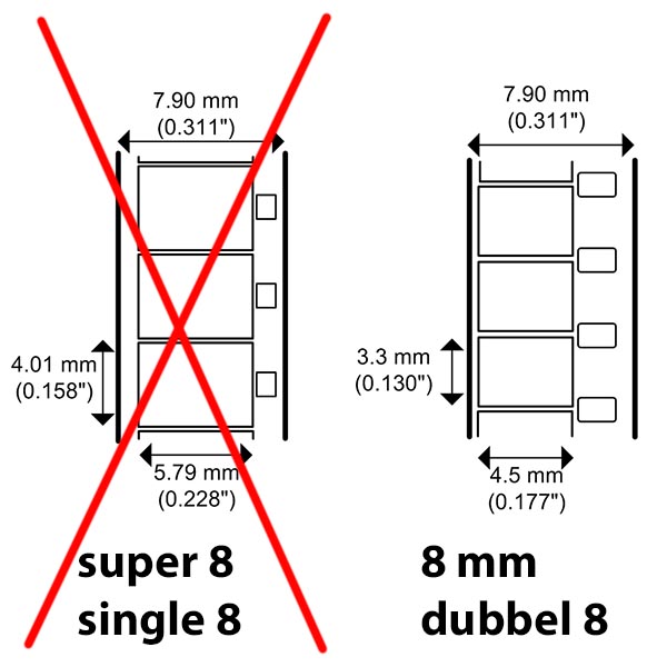 Let op, dit artikel is geschikt voor 8mm / dubbel 8 films en niet voor super 8 / single 8 films.